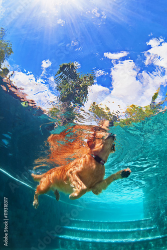 Underwater Funny Photo Of Golden Labrador Retriever Puppy In