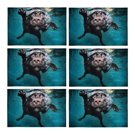 Mkhert Funny Black Dog Puppy Underwater Placemats Table Mats For Dining Room Kitchen Table Decoration 12x18 Inch Set Of 6