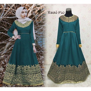 Ready Baju Gamis Batik Remaja Muslim Modern Pesta India Melani Warna Tosca