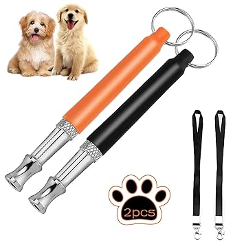 Foocho Dog Whistle Dog Whistle Stainless Steel Ultrasonic Professional Adjustable Frequencies Free Lanyard Strap Black Orange 2pack