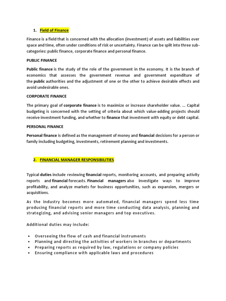 Job summary job overview successful examples resources. Create a detailed job ad with our finance manager job description and duties guide. August 29, 2020 finance management. Even large corporate companies research a lot before investing money in any sector. To provide leadership to, and management of, the treasury and accounts sections to 10.